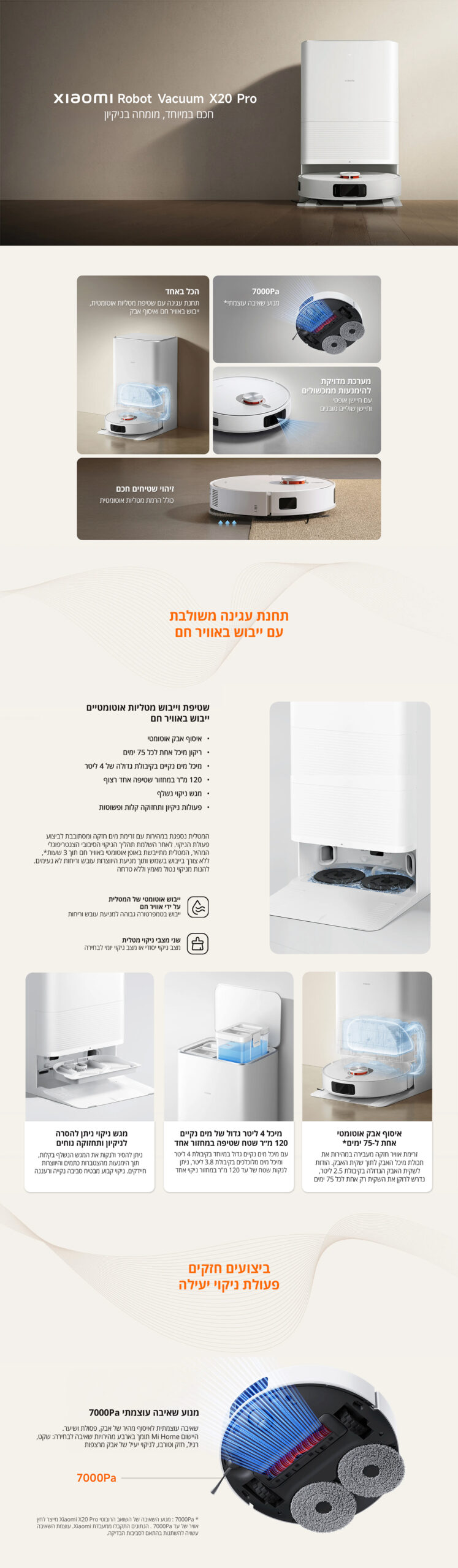 • רובוט שואב-שוטף Xiaomi Robot Vacuum X20 Pro