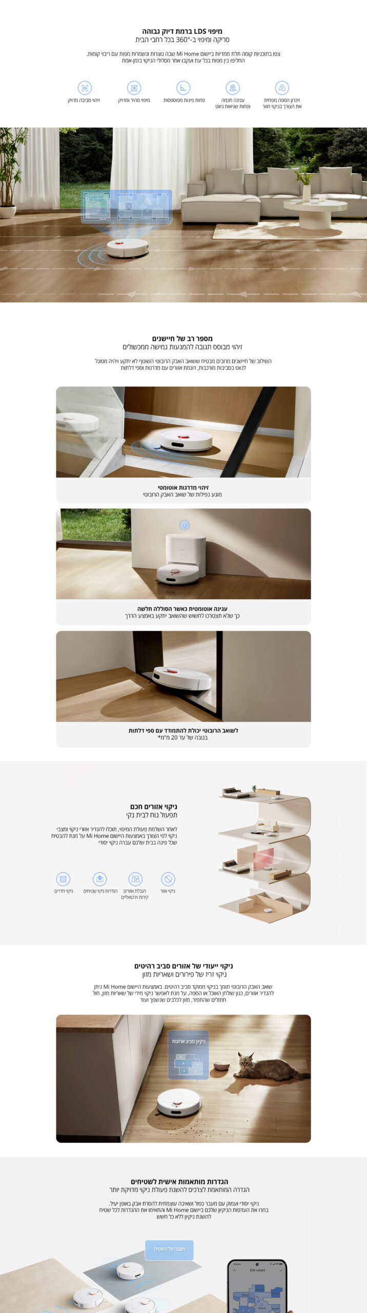 יכולות מיפוי בהתאמה אישית, נקו איך שאתם רוצים – באמצעות צימוד ליישום Mi Home ניתן למפות ולהתאים את הניקיונות שלכם ביעילות מירבית.