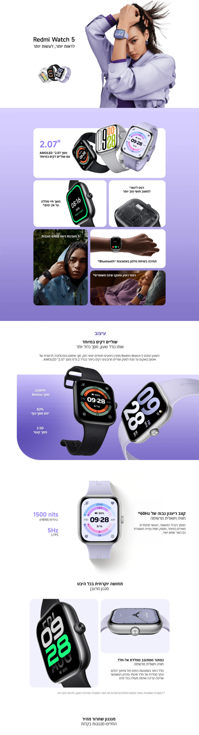 לשעון תמיכה בעברית מלאה ותמיכה בשיחות Bluetooth