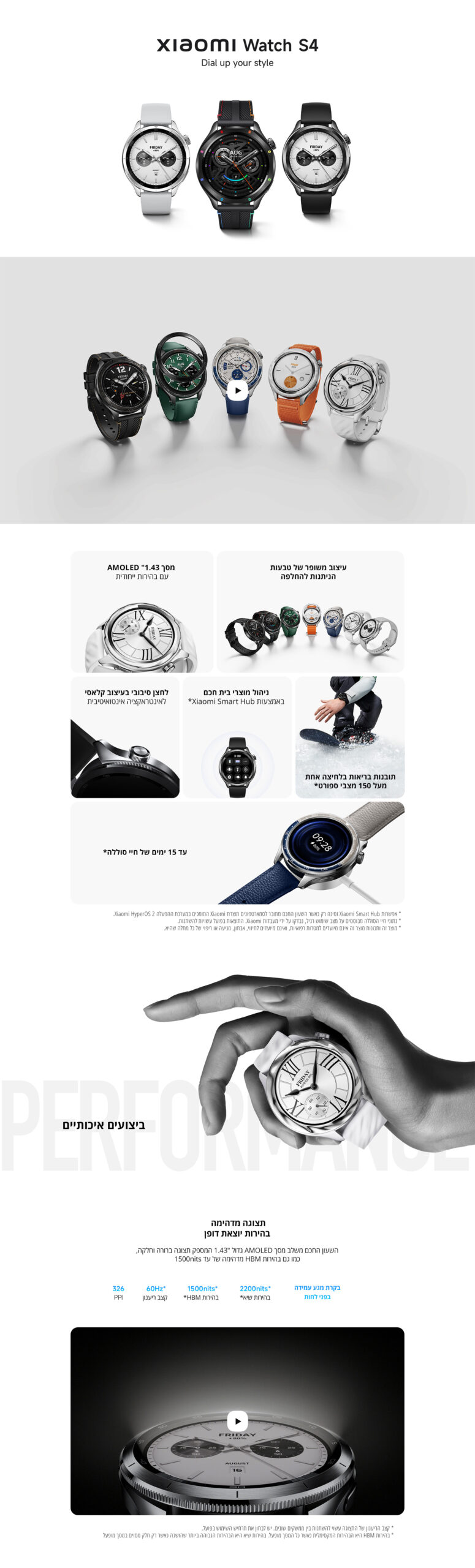 מסך מגע 1.43 אינצ’ מסוג AMOLED עם בהירות יוצאת דופן